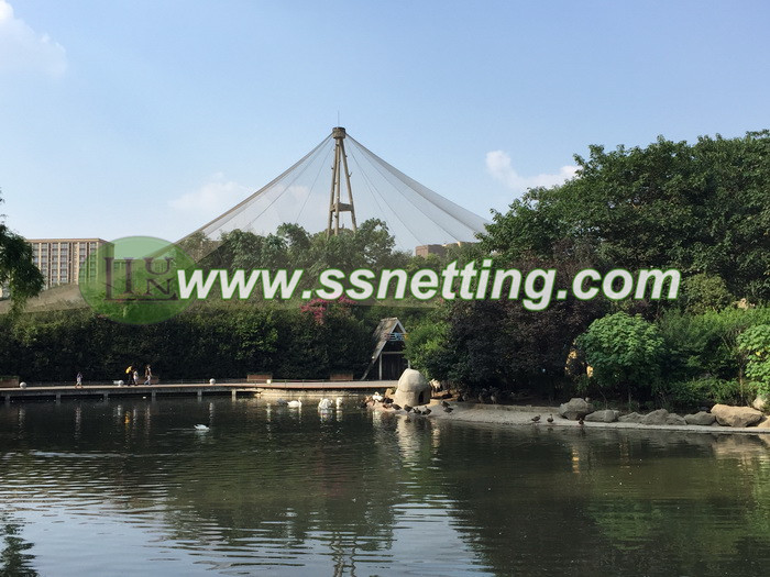 △ The above left pic are a zoo aviary mesh netting project in Chengdu zoo, China, the aviary wire fence netting are large can screen many kind of birds, and wholly place include trees, buildings, lake and other facility.