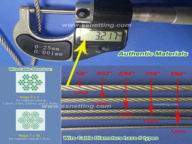 ▼ Stainless steel wire cables we uesd conforms to international standards, can be used more than 30 years with never rust and never corrosion.The wire cable diamater we used are 1.2mm, 1.6mm, 2.0mm, 2.4mm, 3.2mm, bu inch are: 3/64″, 1/16″, 5/64″, 3/62″, 1/8″.
