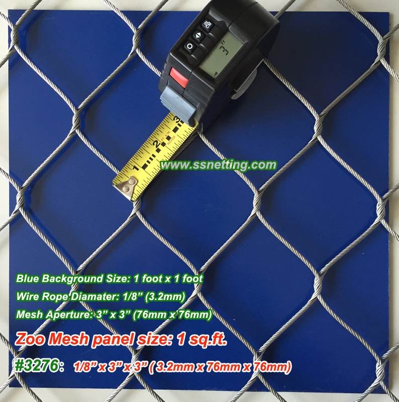 ▼The specification details about Stainless wire mesh fencing code #3276: 1/8″, 3″ x 3″, ( 3.2mm, 76mm x 76mm):