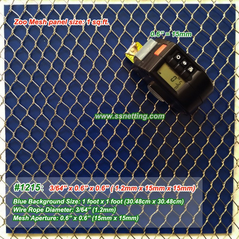 ▼The specification details about Stainless steel cable mesh code #1215: 3/64″, 0.6″ x 0.6″, ( 1.2mm, 15mm x 15mm):