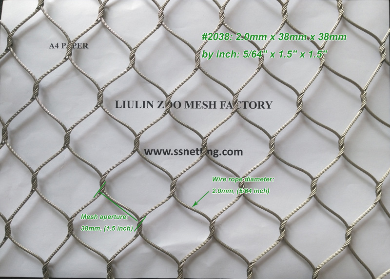 The mesh code #2038 suitable for Monkey enclosure mesh, small animal fence, also can be used for large bird cage netting, like ostrich fence,Macaw netting,Vultures netting;and other similar animal fence netting.