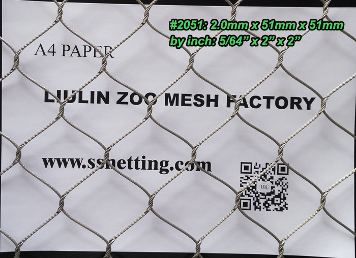 ▼ More parameter details about Stainless steel zoo mesh code #2051: 5/64″, 2″ x 2″, ( 2.0mm, 51mm x 51mm):