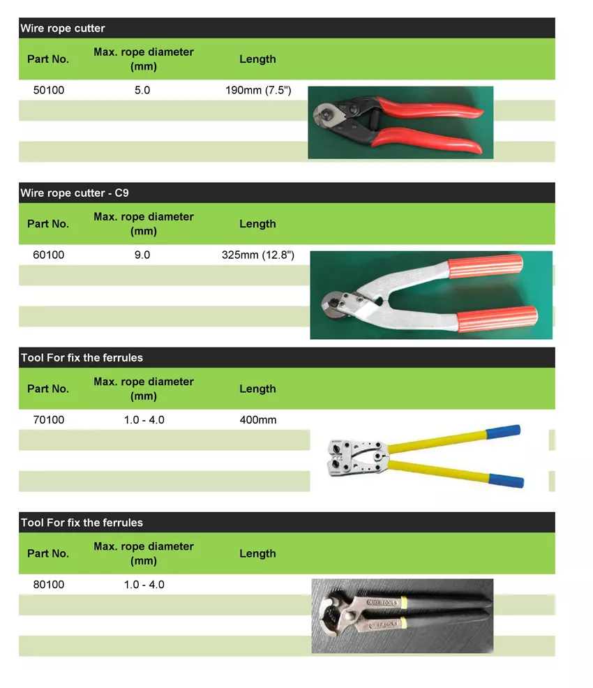 The following are the installation accessories, for stainless steel wire rope mesh products installation, tailoring, removal and other work.