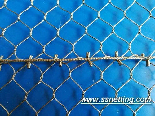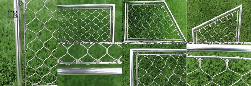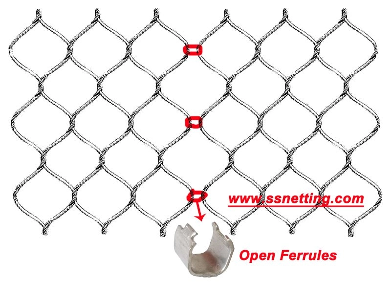 Using the ferrules with “eyes”, in this way, we need to reserve the ferrules with “eyes” on the four edges during the production. The specific method is also to use wire rope go through the ferrules, and make it back and forth between the frame and the ferrules with “eyes”. The benefits of doing so so very beautiful, and always adopted on the decoration. If you have interests, please specify when ordering.