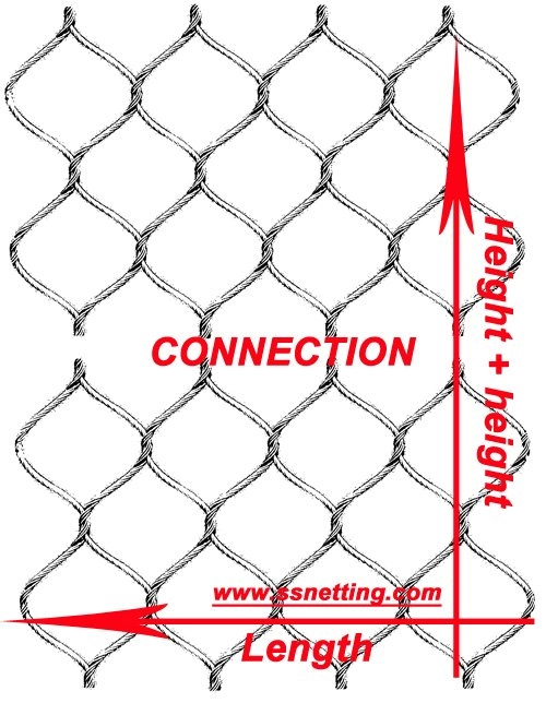 For the convenience of the production, transportation and installation, we usually produce the wire rope mesh panel in size of 10m X 20m, if you are about to oder the over size mesh panel, you may extend or increas the mesh to your size by the following way,